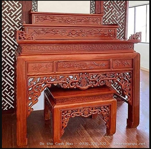 Mẫu Các Kiểu Bàn Thờ Gia Tiên tại Hai Bà Trưng được chế tác từ dòng gỗ Gỗ Gụ quý hiếm, kết hợp tinh hoa đục chạm thủ công của làng nghề Canh Nậu.