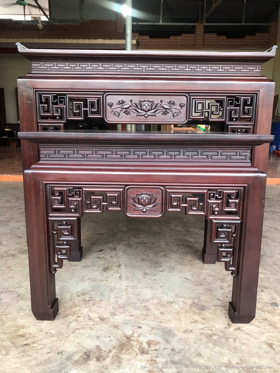 Mẫu Bàn Thờ Gia Tiên Đẹp tại Tây Hồ được chế tác từ dòng gỗ Gỗ Gụ quý hiếm, kết hợp tinh hoa đục chạm thủ công của làng nghề Canh Nậu.