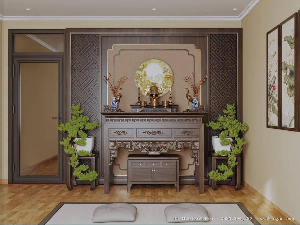 Bàn thờ gia tiên mẫu MẪU BAN THỜ NHỎ GỌN PHÙ HỢP CHO KHÔNG GIAN NHỎ tại Hai Bà Trưng mang phong cách cổ truyền, tôn vinh không gian thờ tự tại gia đình khách hàng ở Hai Bà Trưng.