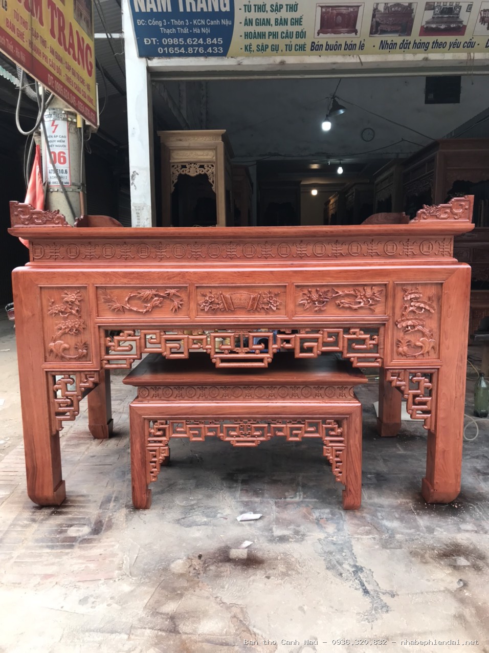 Bàn thờ gia tiên gỗ gõ đỏ kèm tủ GD4 tại Tây Hồ