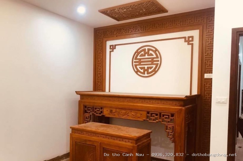 Bàn thờ gỗ sồi hiện đại cho chung cư BTS 027 tại Hoàng Mai